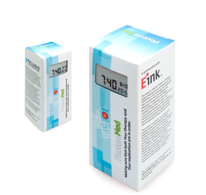 全球藥品包裝解決方案領導廠商Palladio集團與全球電子紙領導廠商E Ink元太科技今日宣佈共同推出PhutureMed 智慧型藥盒,專為藥品包裝精心打造的先進解決方案, 除可偵測藥物運送與存放的環境變化以確保品質,亦能記錄病患用藥歷程,同時還能協助其遵照醫囑服用藥物。PhutureMed整合E Ink電子紙顯示器與傳感器,可持續監控藥物週遭的環境變化,並透過E Ink電子紙顯示相關資訊。即便在電池沒電的情況下,所有訊息仍可持續保留於屏幕上,讓病患與客人對於使用藥物的品質感到放心。