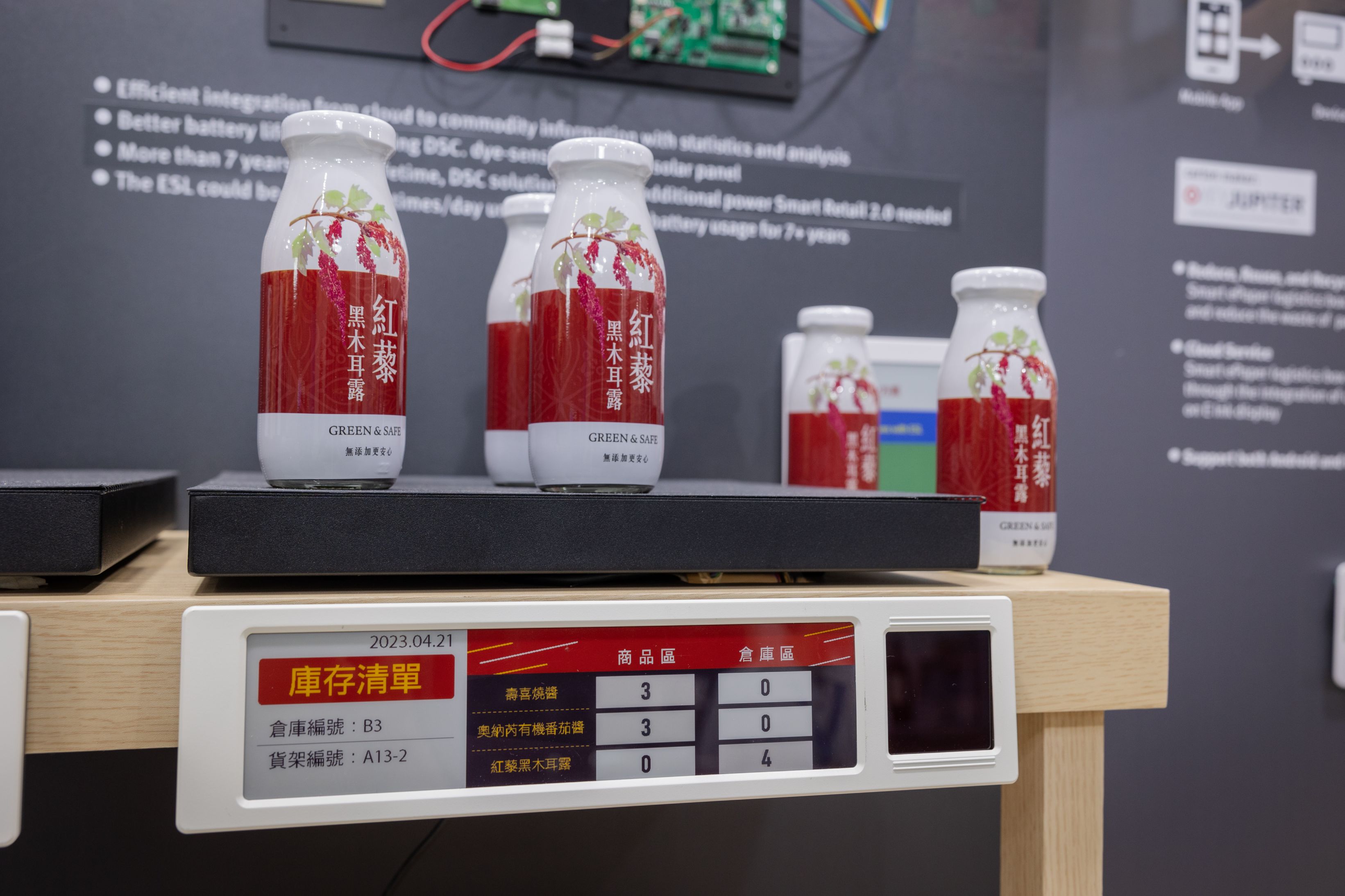 3. 在電子紙貨架標籤整合可用於室內的染料敏化太陽電池技術,以環境弱光為再生能源提供感測器所需要的能量,延長使用壽命,協助業者邁向淨零碳排的商業空間。