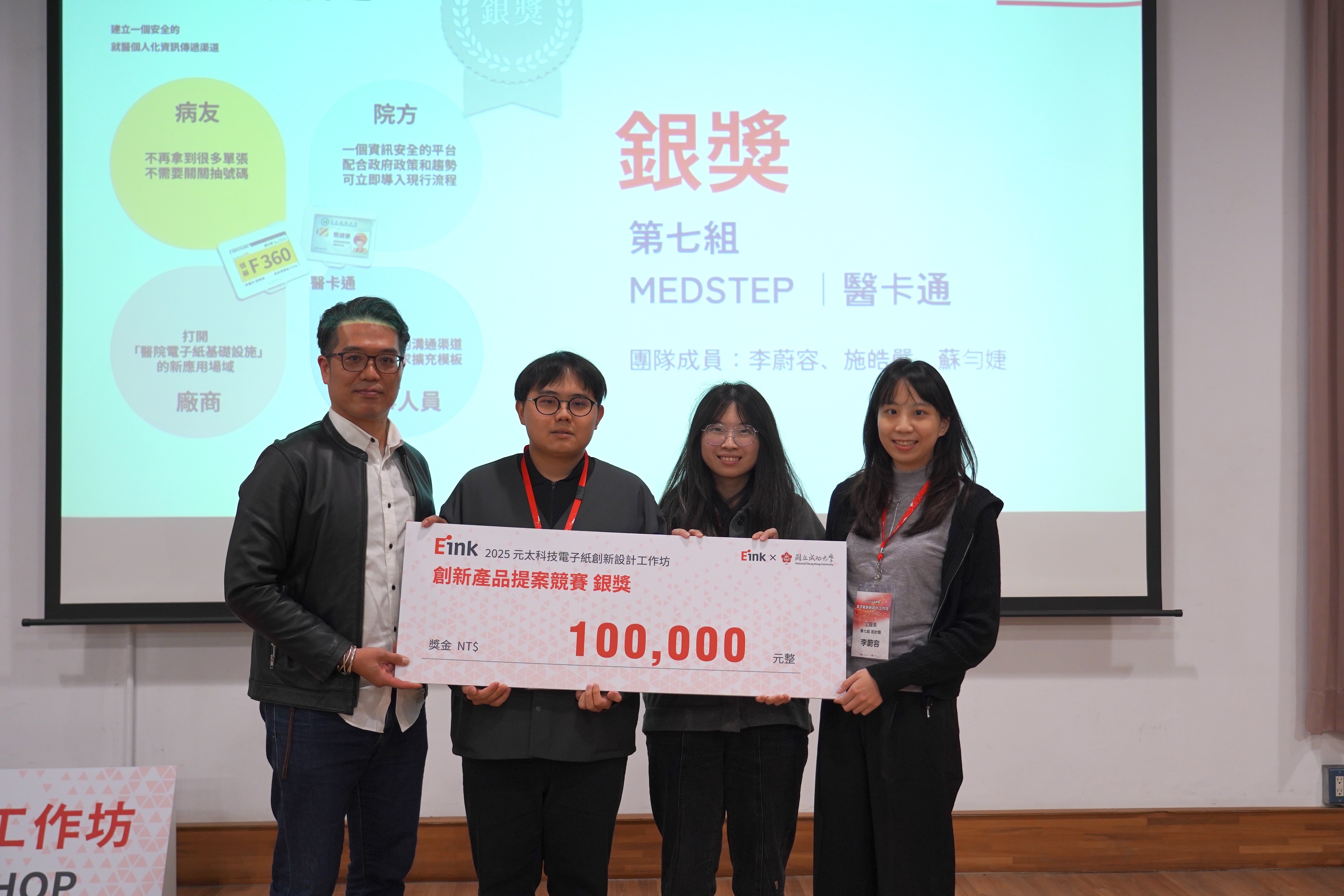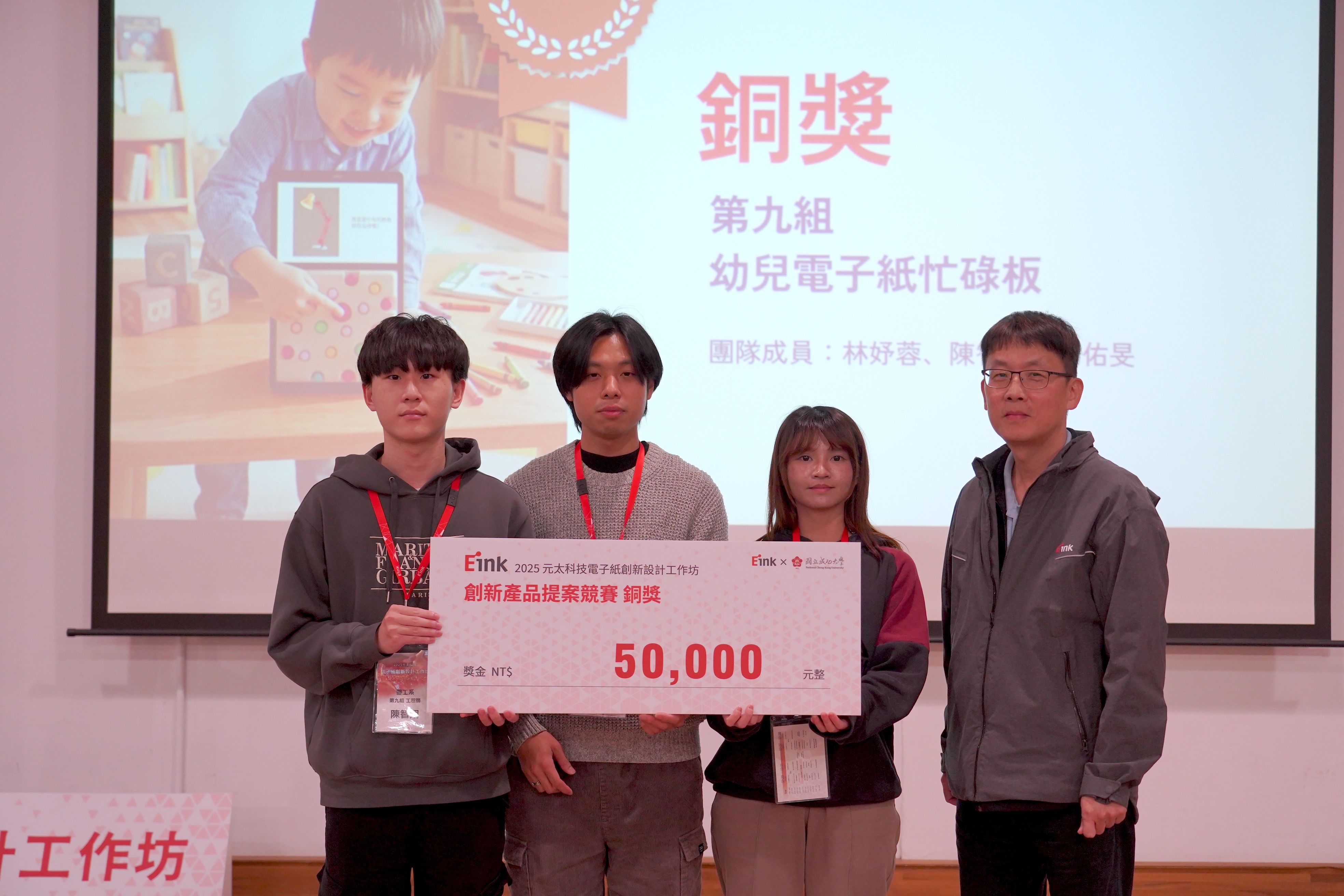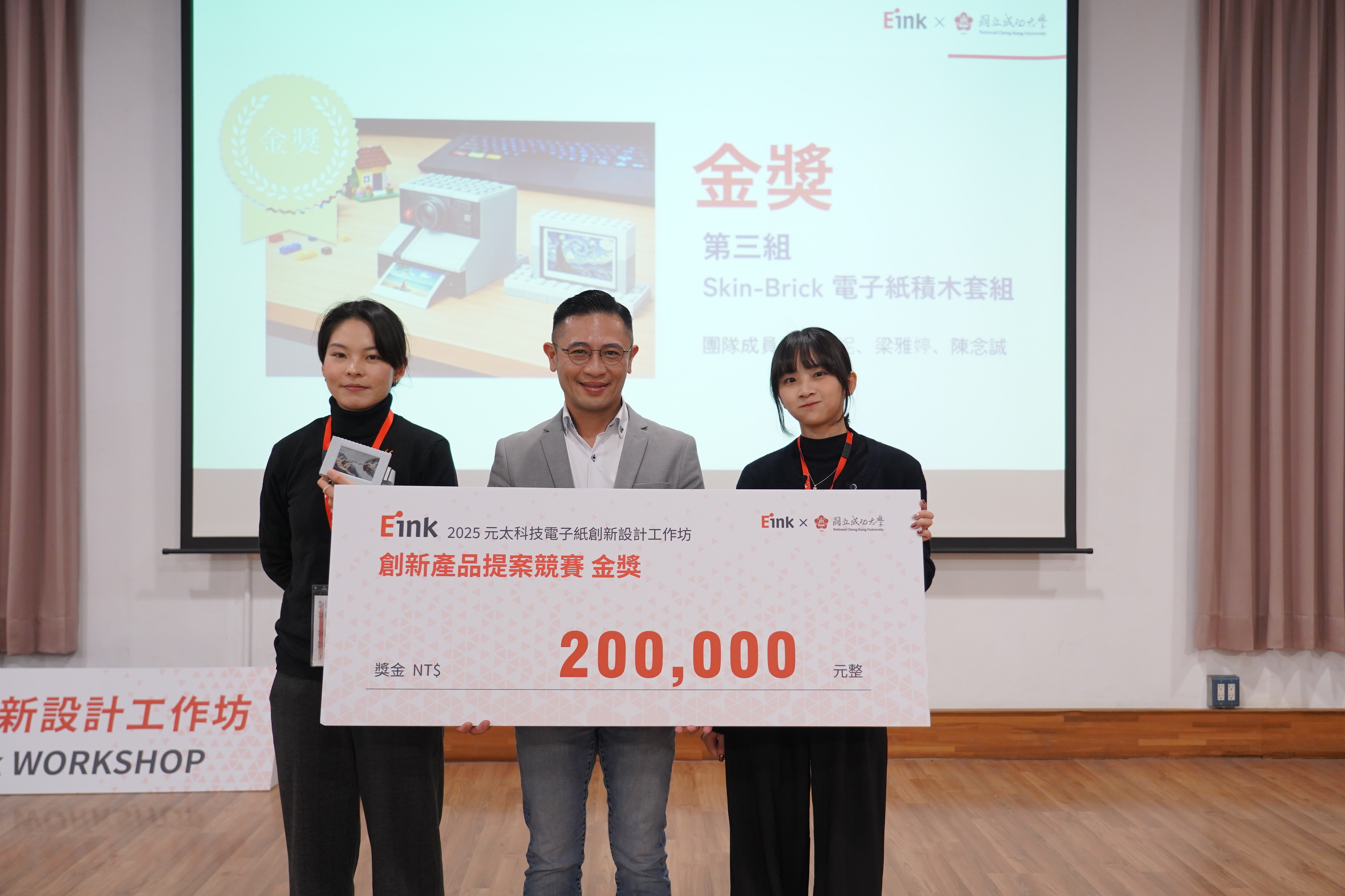 在獲獎作品方面,三組團隊分別從生活創作、醫療流程與幼兒療育等面向切入,展現電子紙在多元應用場景中的延展性與價值。金獎作品以模組化與創作自由為核心概念,重新詮釋顯示介面在日常生活與娛樂情境中的可能形式;銀獎作品則聚焦醫療場域中的資訊理解問題,透過重新梳理資訊呈現方式,提升患者體驗並回應隱私與安全議題;銅獎作品則從幼兒職能治療出發,關注低刺激顯示與人本照護的結合,展現電子紙於教育與療育輔助領域的應用潛力。三件作品雖切入點不同,卻共同體現電子紙作為「低干擾、可延展資訊介面」的核心價值。