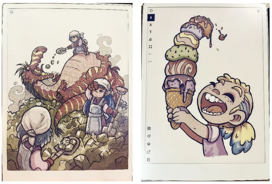 E Ink 長期支持數位藝術創作,其中 reMarkable Paper Pro 可說是專為創作者設計的理想電子紙繪圖板。它提供自然的書寫與繪圖體驗,能根據筆壓與速度精準回應,沒有傳統螢幕的眩光與藍光干擾。全新升級的「進階混色功能」讓藝術家能在電子紙上表現色彩層次、漸層與紋理,創作更富生命力。完成作品後,可透過 reMarkable 手機應用程式或電腦版介面輕鬆匯出,搭配電子紙藝術展示框,就能將創作延伸至生活空間。