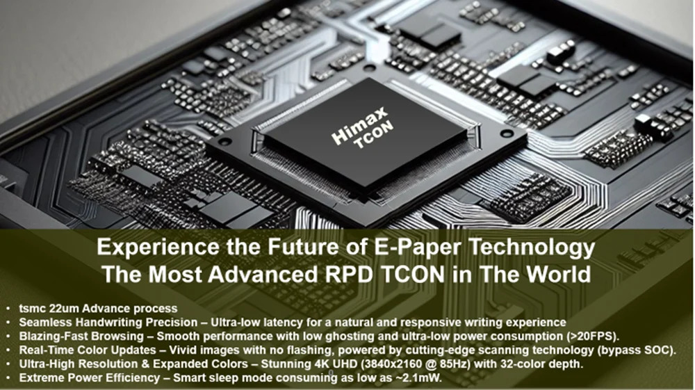 在2025 Touch Taiwan 智慧顯示展中,奇景光電推出一項突破性的超低功耗、電池供電的智慧零售解決方案。此方案結合 Himax WiseEye™ 超低功耗 AI 智慧感測技術,並搭載業界領先的 E Ink Spectra 6™ 彩色電子紙看板(EPD),為智慧零售帶來全新的互動模式與永續價值。